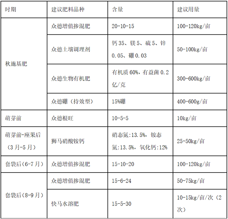E、中微元素因缺補缺、應(yīng)根據(jù)土壤及樹體情況,通過土壤或葉面,進行適當(dāng)補充;對于酸化土壤,要加大鈣鎂施用。